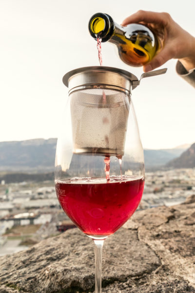 Nella carta dei vini del ristorante si trova una selezione di bevande a base di Kombucha studiate in abbinamento alle sue creazioni. Ma è altrettanto intrigante sperimentarle come proposta alternativa nella lounge Skybar di Castel Flavon che domina il capoluogo altoatesino.