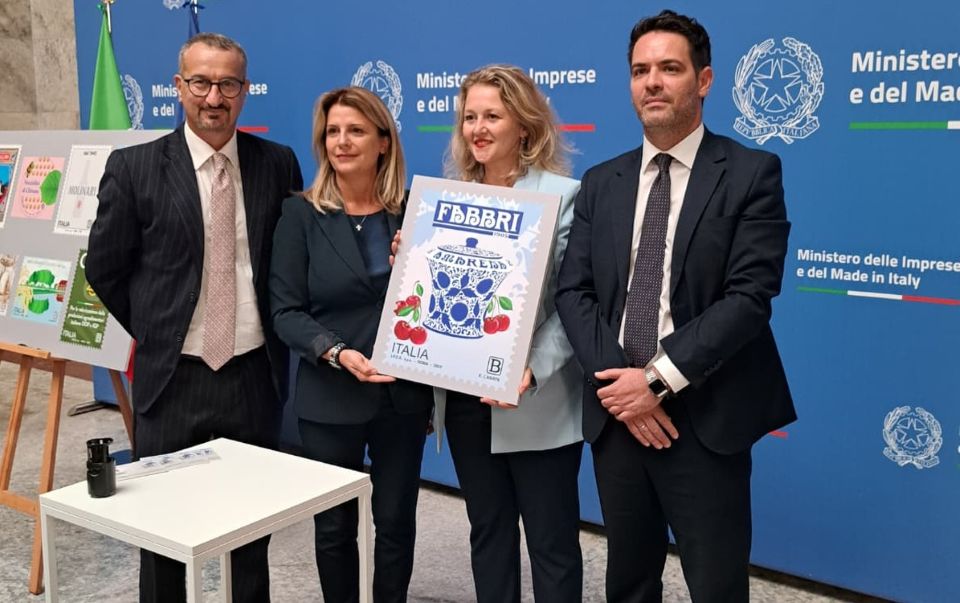 L’inconfondibile vaso in ceramica dai decori bianchi e blu, circondato da amarene e sormontato dal logo dell’azienda. Questo il disegno realizzato da Poste Italiane per Fabbri 1905 e reso pubblico alla presenza del Sottosegretario di Stato con delega alla filatelia, Fausta Bergamotto presso il Ministero delle Imprese e del Made in Italy. L’azienda bolognese è infatti tra quelle selezionate per la serie tematica di francobolli “Le Eccellenze del sistema produttivo e del Made in Italy” dedicata al settore alimentare.
