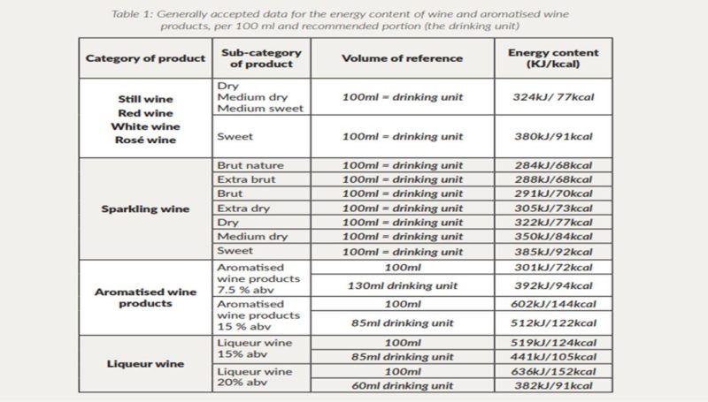 Così, oltre alle informazioni obbligatorie sul contenuto di solfiti, su uno spumante Brut potrebbero comparire formule come questa: 100ml: E= 301kJ/72kcal.
