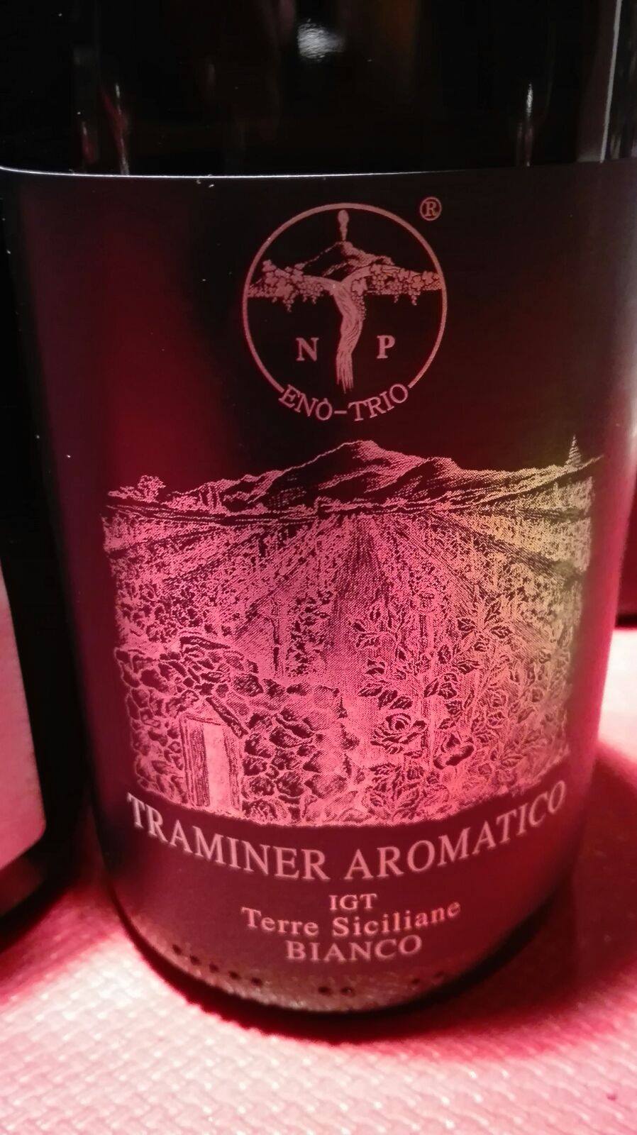 Notevole, veramente notevole. Bocca (per fortuna) idem: il tannino morbido accarezza il palato, poi è dolce, setoso e lungo. Poi un Traminer Aromatico, da vigne a 1000m d’altezza sull’Etna. Anche qui siamo su rese bassissime, ma con densità di impianto leggermente superiore al Nerello. Vino elegante, aromatico, delicato. Con note floreali, fruttate e con sentori di spezie. Altra bel prodotto.