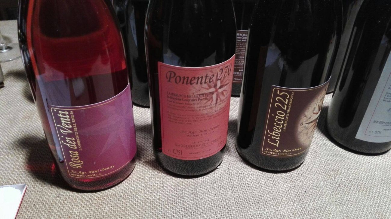 Risalendo lo stivale cadiamo nella tentazione di qualche bella bollicina. Di Lambrusco, però. Il vino giusto, per spezzare e preparare il palato ai rossi corposi. Denny Bini è un personaggio da amare. Un Emiliano Doc, di Reggio. La Rosa dei Venti lo puoi bere anche a colazione. Lambrusco varietà Grasparossa, rosato rifermentato in bottiglia. Macerazione di 2 ore senza controllo. Secco, leggermente amaro, con un accenno di tannino. Bellissimo. Ponente 270 Lambrusco dell’Emilia, “come lo si fa a Reggio”, ci racconta. Cinque giorni di macerazione, mischiando tutte le varietà di Lambrusco: Lambrusco Grasparossa, Malbo Gentile, Lambrusco Salamino, Lambrusco di Sorbara. Pieno, ma morbido. Libeccio 225, il suo Lambrusco, il Grasparossa. Qui siamo a 10 giorni di macerazione , il colore lo rivela. Rifermentato in bottiglia. Bel corpo e una bevibilità che non ti stanca mai. Un po’ come La Terra Trema. Imperdibile, l’anno prima. Come l’anno dopo.