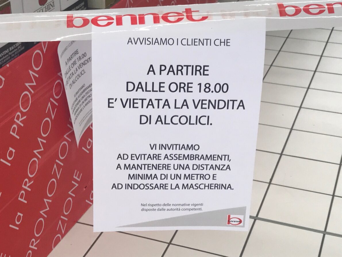 La somministrazione di bevande su area pubblica e privata sarà possibile solo fino alle 24 e dalle 18 esclusivamente con consumo al tavolo. Chiusi anche i distributori di alimenti confezionati e bevande dalle 18 alle 6 del mattino, se con accesso dalla strada.