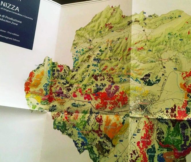 Alessandro Masnaghetti ha visitato le aziende della zona. Consumando, per un anno, suole e matite. Obiettivo: disegnare una carta utile tanto ai consumatori finali del Nizza Docg, quanto ai produttori e agli esperti del settore.