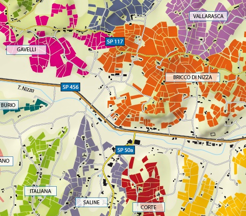 In definitiva sono più di sessanta i cru identificati. La mappa delle vigne del Nizza elaborata da Enogea non stabilisce differenze tra una produzione o l’altra. Nessun commento, insomma, sulle caratteristiche dei vini ottenuti da Barbera in purezza, nei diversi cru.