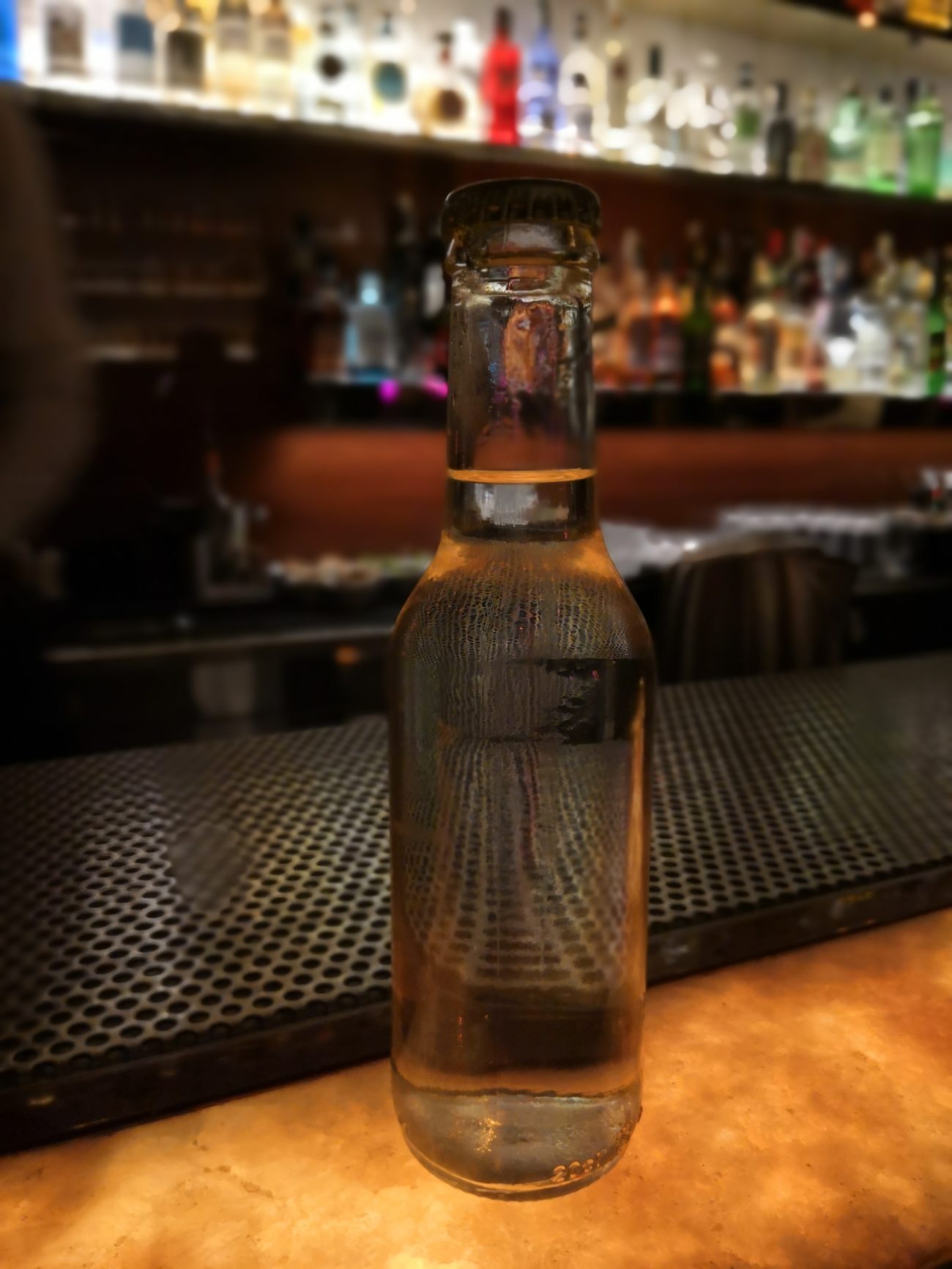 Una bottiglietta trasparente ed un bicchiere highball con stecca di ghiaccio e scorza di limone. La scelta, se fruire della preparazione da un contenitore o dall’altro, è stata da noi fatta anche per attrattiva estetica? Può davvero l’estetica essere veicolo del gusto? I sommelier risponderebbero di no.