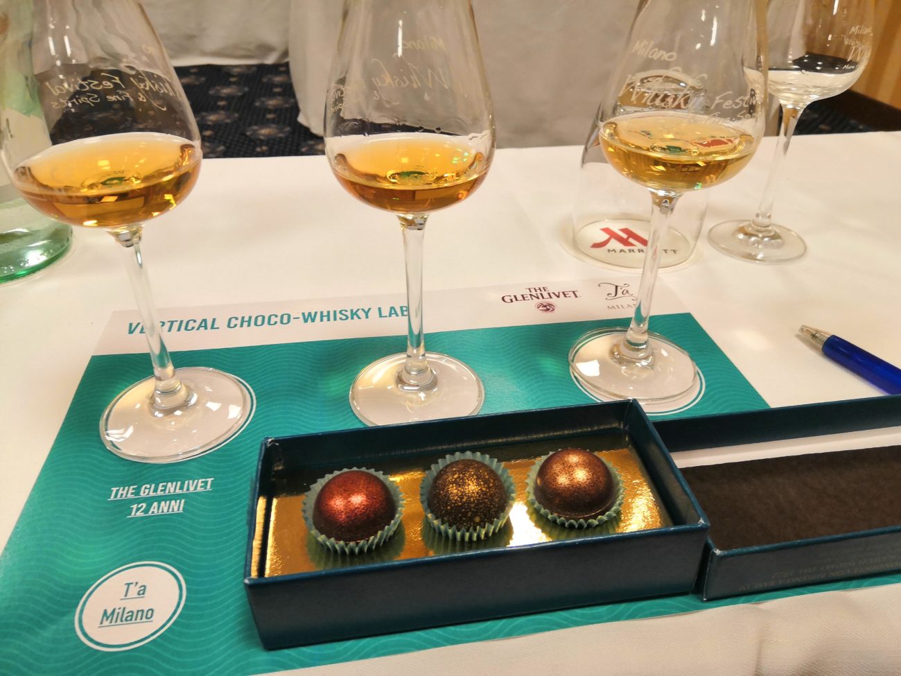 MILANO – Tre praline di cioccolato. Tre calici di whisky. Abbinamento scontato? Abbinamento forzato? A proporre il gioco sono stati T’a Milano e The Glenlivet in occasione dello scorso Milano Whisky Festival. Una doppia verticale, whisky da un lato, praline d’altro, in un crescendo di intensità e consistenze.
