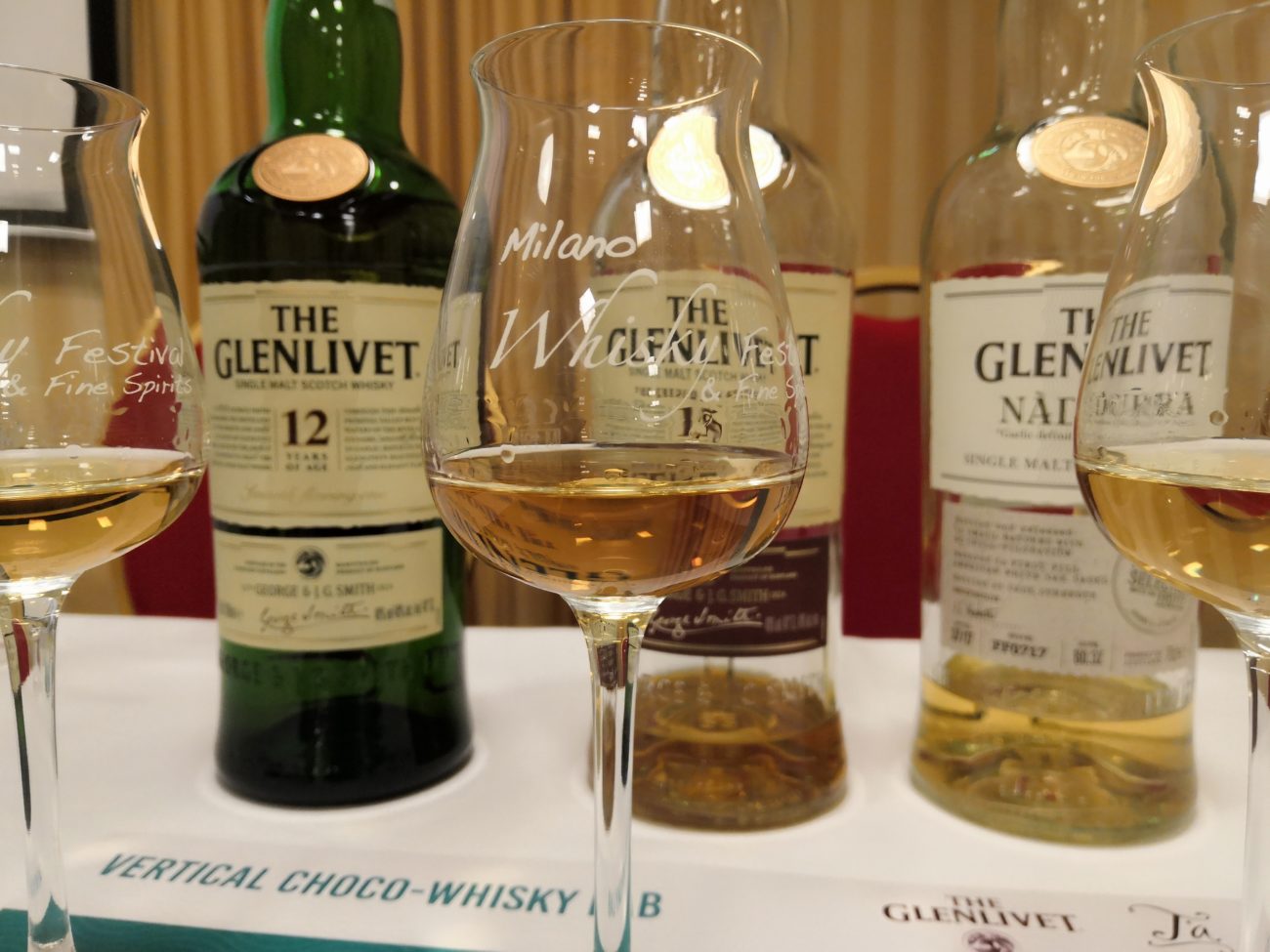 Stefano Bettelli, Maître Chocolatier di T’a Milano, ha mostrato al pubblico come preparare le diverse praline ripiene in uno show cooking semplice ed istruttivo. Alain Winchester, Master Distiller di The Glenlivet, ha guidato la degustazione dei tre dram.