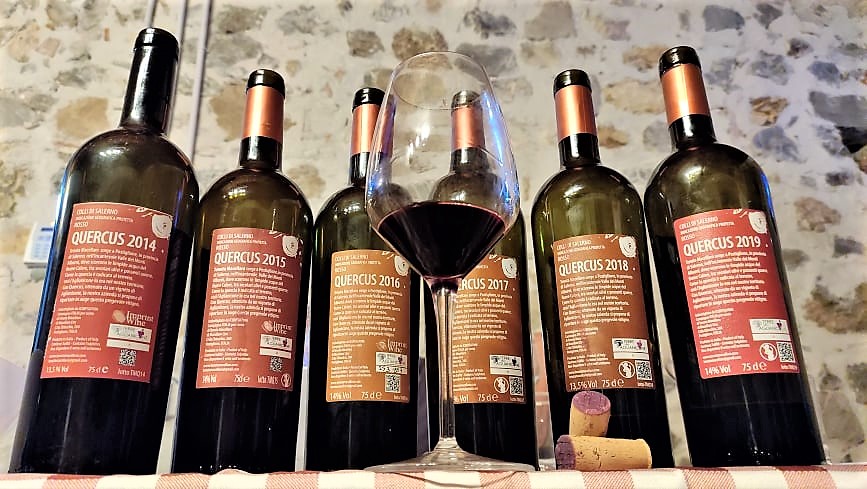 Un altro passo avanti rispetto alla 2018, stagione molto piovosa in cui Ciro Macellaro è riuscito in un mezzo miracolo enologico. La crescita è ancor più evidente se si effettua il confronto tra “Quercus” 2019 e 2017. Un’annata caldissima, che ha comportato un volume alcolico ingombrante nell’equilibrio complessivo del vino (14,5% in vol., un grado in più della 2018).
